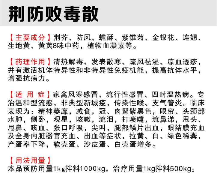 【用法用量】本品1000g拌料1000kg或兑水2000kg混饮,开水焖后集中拌料,效果更佳,连用3—5天.