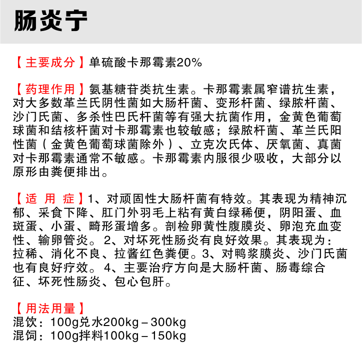 【主要成份】单硫酸卡那霉素20%